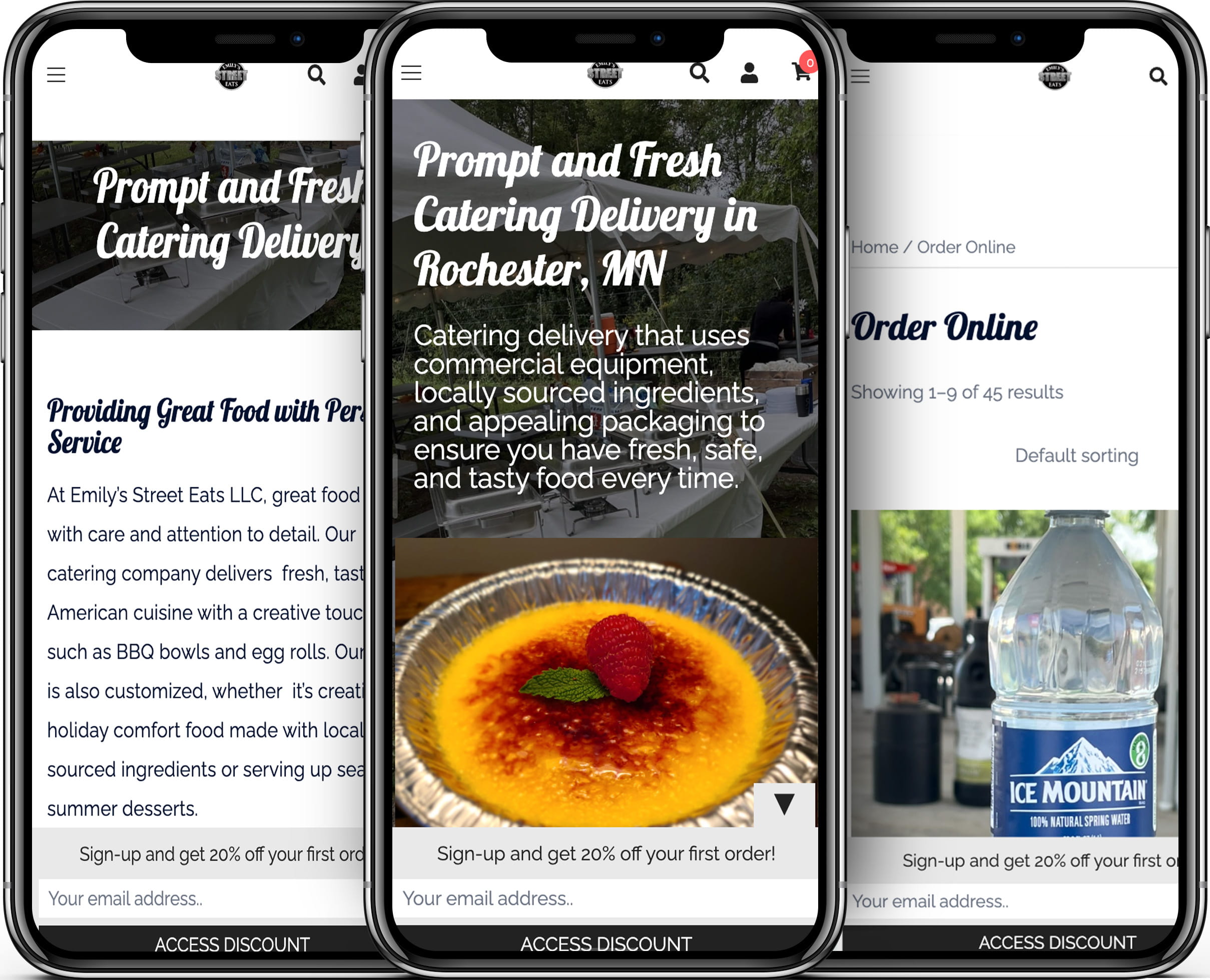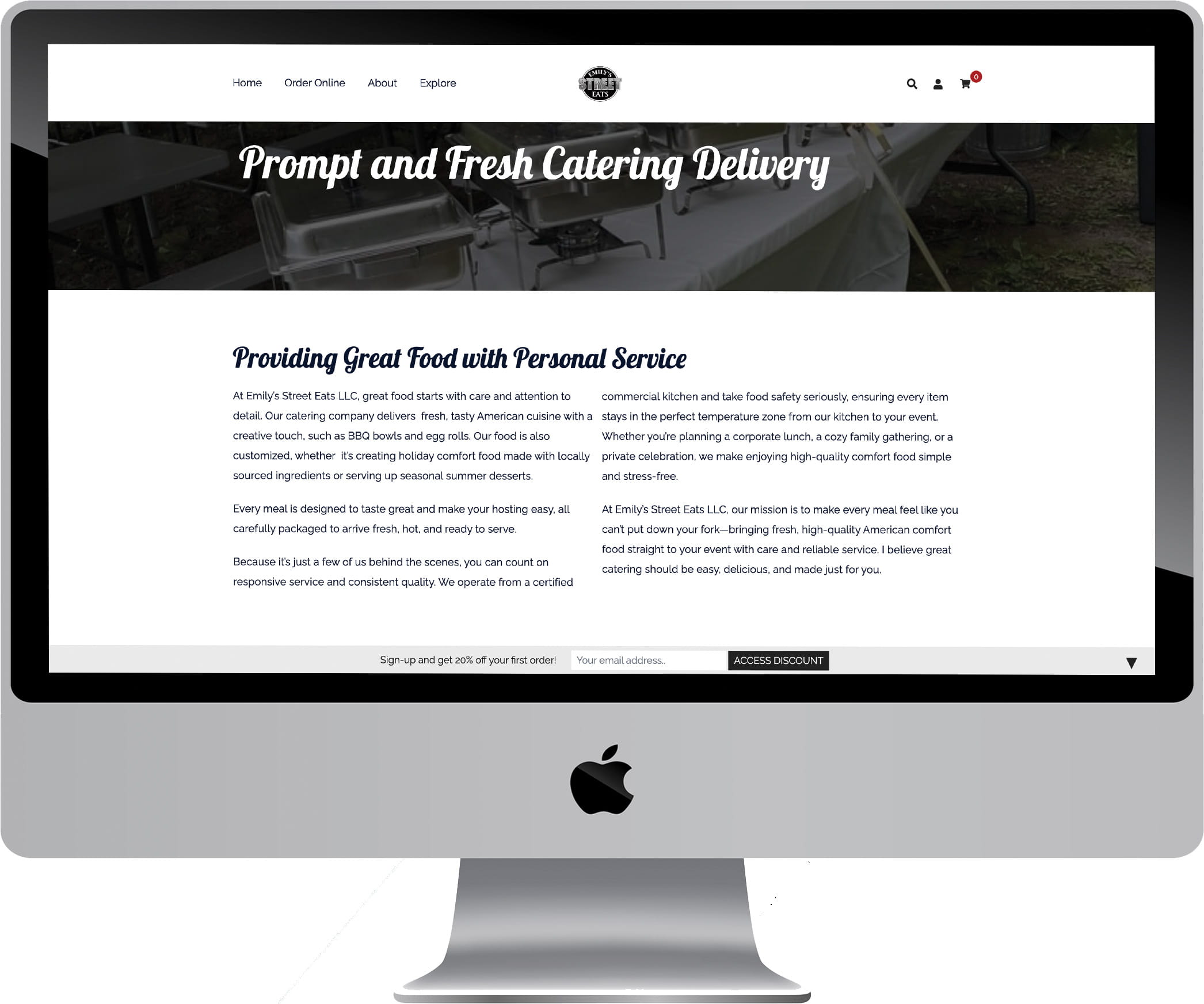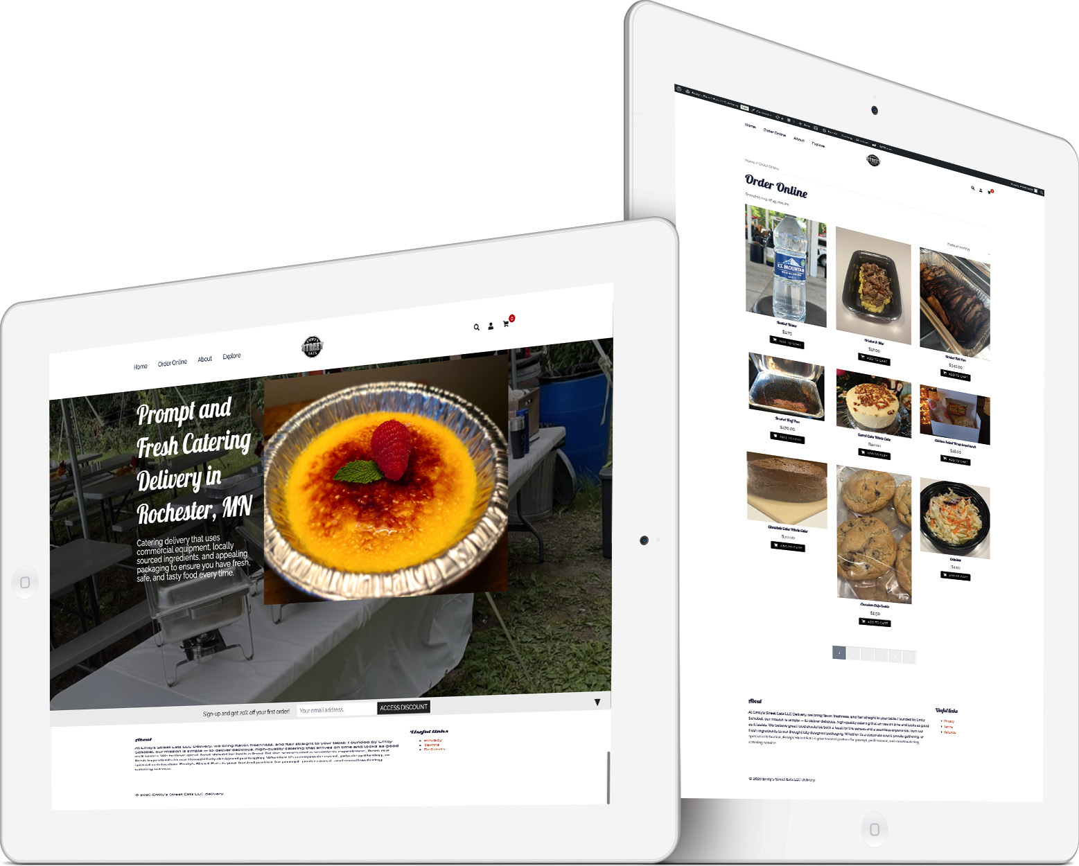 Emily’s Catering needed a new site, one that would integrate quality visual appeal with succinct, direct language that wouldn’t be too wordy as to disengage the viewer.  The site speed was greatly improved by migrating the host from Bluehost to Cloudways.  We were also able to make it responsive whether on mobile, desktop, and iPad.  Click on the picture to link to the Emily’s Catering website.  Currently Emily’s Catering is rebranding as Emily’s Street Eats LLC, so the website may be up for only a little longer.
